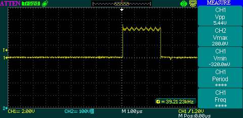 Now the PWM looks much better (have a quick look to the previous oscilloscope screens), and the circuit performs as expected, seems like the Ethernet module was greatly influenced by all the variations and improper filtering.