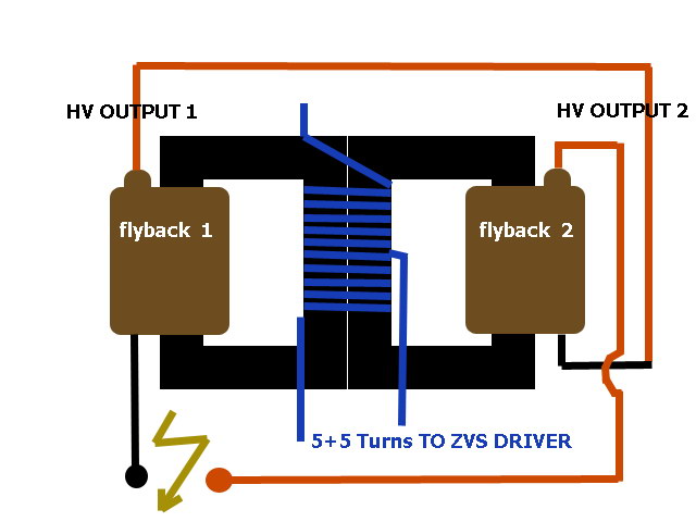 if this doesn’t work, try using two identical flybacks, or wire your own secondaries.